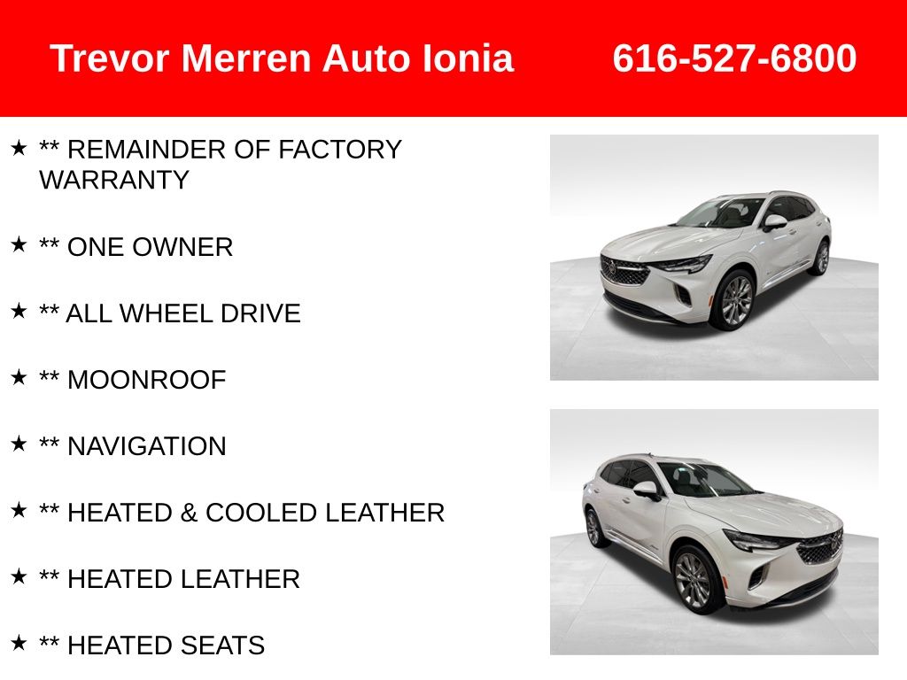 Recent Arrival! ** REMAINDER OF FACTORY WARRANTY, ** ONE OWNER, ** ALL WHEEL DRIVE, ** MOONROOF, ** NAVIGATION, ** HEATED & COOLED LEATHER, ** HEATED LEATHER, ** HEATED SEATS, ** HEATED STEERING WHEEL, ** HEATED REAR SEATS, ** BACKUP CAMERA, ** REMOTE START, ** BLUETOOTH, ** Passed 40 Pt. Inspection, ** STEERING WHEEL AUDIO CONTROLS, ** REAR CLIMATE PACKAGE, ** POWER SEAT, ** ALLOY WHEELS, ** MULTI-ZONE CLIMATE CONTROL, ** USB PORT, ** AUX JACK, ** 2 KEYS, ** APPLE CARPLAY/ANDROID AUTO, Panoramic Moon Roof, Air Quality Indicator, Wireless Charging (Devices), Heads Up Display, REAR CAMERA MIRROR W/WASHER, ENHANCED AUTO PARKING ASSIST, 3.47 Final Drive Axle Ratio, 4-Wheel Disc Brakes, 8-Way Power Driver Seat Adjuster, 9 Speakers, ABS brakes, Air Conditioning, Alloy wheels, AM/FM radio: SiriusXM, Apple CarPlay/Android Auto, Auto High-beam Headlights, Auto-dimming door mirrors, Auto-dimming Rear-View mirror, Automatic temperature control, Bose Premium 9-Speaker Audio System Feature, Brake assist, Bumpers: body-color, Compass, Delay-off headlights, Driver door bin, Driver vanity mirror, Dual front impact airbags, Dual front side impact airbags, Electronic Stability Control, Emergency communication system: OnStar and Buick connected services capable, Exterior Parking Camera Rear, Following Distance Indicator, Forward Collision Alert, Four wheel independent suspension, Front anti-roll bar, Front Bin Center Console USB Ports, Front Bucket Seats, Front Center Armrest, Front dual zone A/C, Front Passenger 8-Way Power Seat Adjuster, Front Pedestrian Braking, Front reading lights, Fully automatic headlights, Garage door transmitter, HD Radio, Heads-Up Display, Heated door mirrors, Heated Driver & Front Passenger Seats, Heated front seats, Heated Rear Outboard Seating Positions, Heated rear seats, Heated steering wheel, Illuminated entry, IntelliBeam Headlamp Control w/Auto High Beam, Knee airbag, Lane Keep Assist w/Lane Departure Warning, Low tire pressure warning, Memory Card Receptacle Audio System Feature, Memory seat, Navigation System, Not Equipped w/Lane Change & Rear Cross Traffic Alerts, Occupant sensing airbag, Outside temperature display, Overhead airbag, Overhead console, Panic alarm, Passenger door bin, Passenger vanity mirror, Perforated Leather-Appointed Seat Trim, Power door mirrors, Power driver seat, Power Liftgate, Power moonroof, Power passenger seat, Power steering, Power windows, Preferred Equipment Group 1SU, Premium audio system: Bose, Radio data system, Radio: Buick Infotainment System AM/FM w/Nav, Rear anti-roll bar, Rear reading lights, Rear seat center armrest, Rear window defroster, Rear window wiper, Remote keyless entry, Security system, SiriusXM Radio, Speed control, Split folding rear seat, Spoiler, Steering wheel mounted audio controls, Telescoping steering wheel, Tilt steering wheel, Traction control, Trip computer, USB Charging-Only Ports, Variably intermittent wipers, Ventilated Driver & Front Passenger Seats, Ventilated front seats, Vertical Cargo Net (LPO), Wheels: 20" Aluminum w/Avenir Pearl Nickel Finish, Wireless Apple CarPlay/Wireless Android Auto. Odometer is 2911 miles below market average!