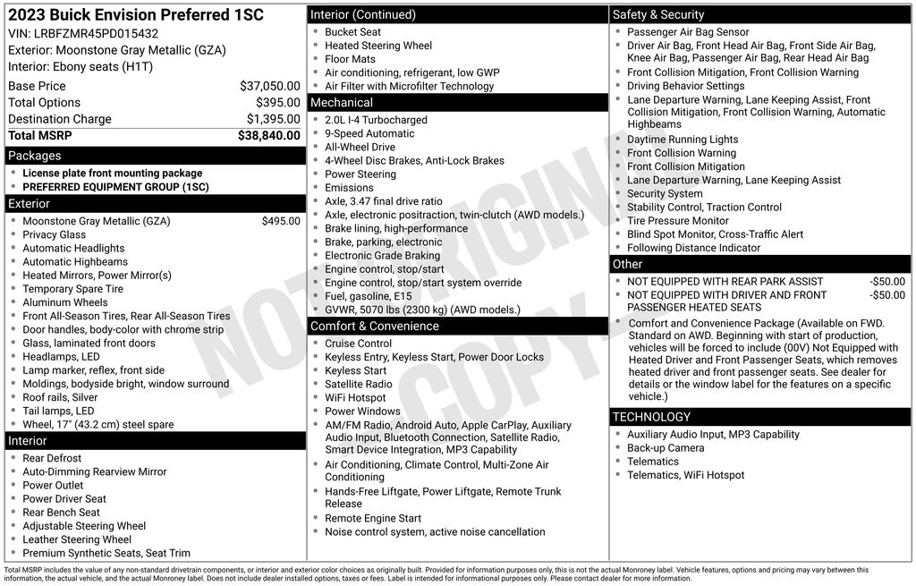 Researched 6 different competing compact luxury SUVs. Kept coming back to the Buick Envision Avenir. It looks great, descent gas mileage, nice interior, has quiet tuning and rides well. All at a lower price than the German alternatives. Built on a Cadillac XT4 frame and suspension with enhancements. It also received the Cadillac 2.0 L Turbo engine and 9 speed transmission that always puts the engine in the sweet spot of its torque curve. Also uses regular gas. A pleasure to drive. Buick hit a home run with this car. - 5.0