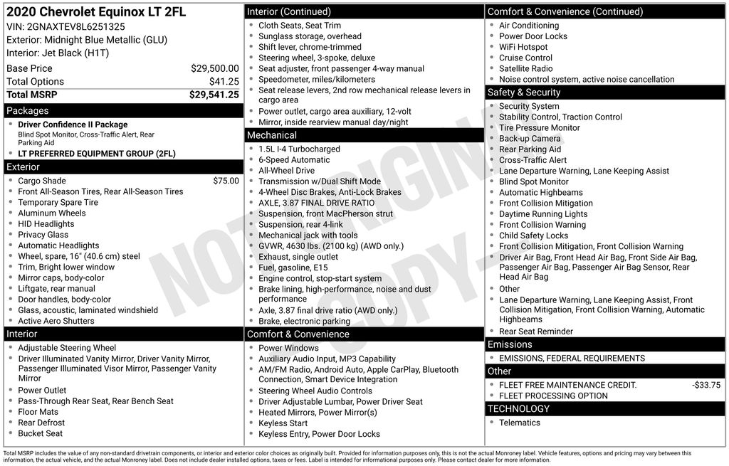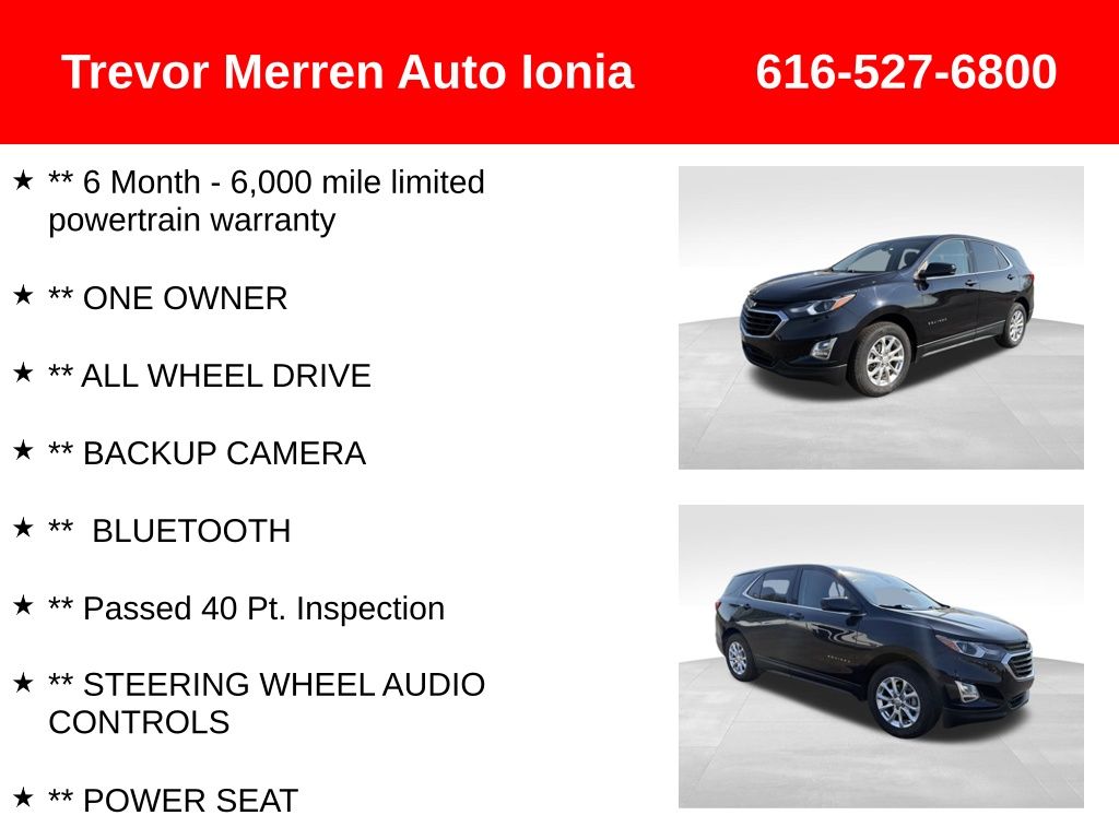 ** 6 Month - 6,000 mile limited powertrain warranty, ** ONE OWNER, ** ALL WHEEL DRIVE, ** BACKUP CAMERA, ** BLUETOOTH, ** Passed 40 Pt. Inspection, ** STEERING WHEEL AUDIO CONTROLS, ** POWER SEAT, ** ALLOY WHEELS, ** USB PORT, ** AUX JACK, Preferred Equipment Group 2FL.