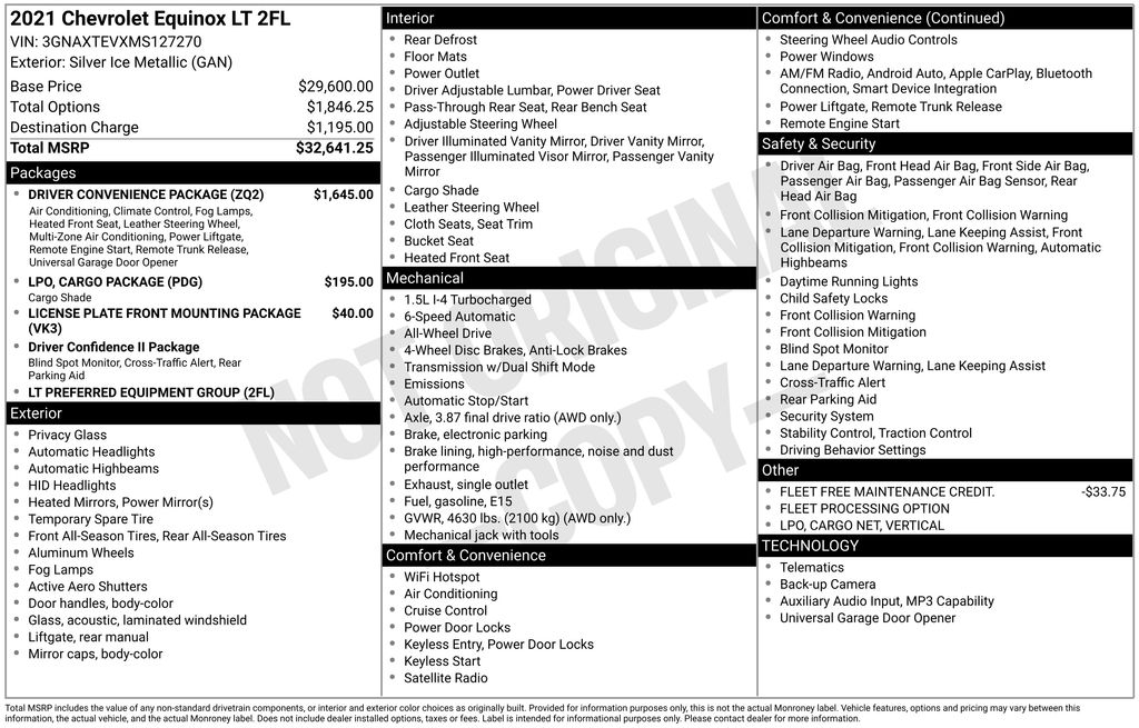 Recent Arrival! ** 6 Month - 6,000 mile limited powertrain warranty, ** ALL WHEEL DRIVE, ** HEATED SEATS, ** BACKUP CAMERA, ** REMOTE START, ** BLUETOOTH, ** Passed 40 Pt. Inspection, ** STEERING WHEEL AUDIO CONTROLS, ** POWER SEAT, ** ALLOY WHEELS, ** MULTI-ZONE CLIMATE CONTROL, ** USB PORT, ** AUX JACK, ** 2 KEYS, ** APPLE CARPLAY/ANDROID AUTO, 3-Spoke Leather-Wrapped Steering Wheel, Cargo Package (LPO), Driver Convenience Package, Dual Zone Automatic Climate Control, Front Fog Lamps, Heated Driver & Front Passenger Seats, Preferred Equipment Group 2FL, Rear Power Liftgate, Remote Start, Retractable Cargo Shade, Universal Home Remote, Vertical Cargo Net (LPO).