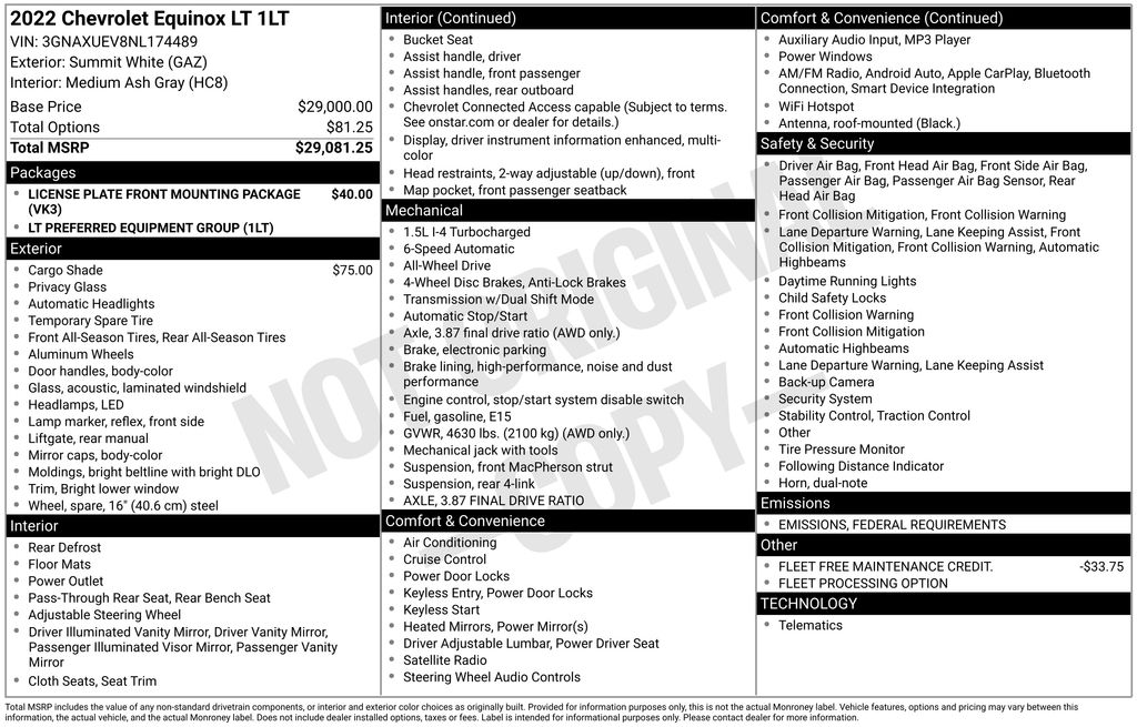 ** 6 Month - 6,000 mile limited powertrain warranty, ** CLEAN CARFAX, ** ALL WHEEL DRIVE, ** BACKUP CAMERA, ** BLUETOOTH, ** Passed 40 Pt. Inspection, ** STEERING WHEEL AUDIO CONTROLS, ** POWER SEAT, ** ALLOY WHEELS, ** USB PORT, ** AUX JACK, ** 2 KEYS, ** APPLE CARPLAY/ANDROID AUTO, ** COLLISION ALERT SENSORS, Preferred Equipment Group 1LT.