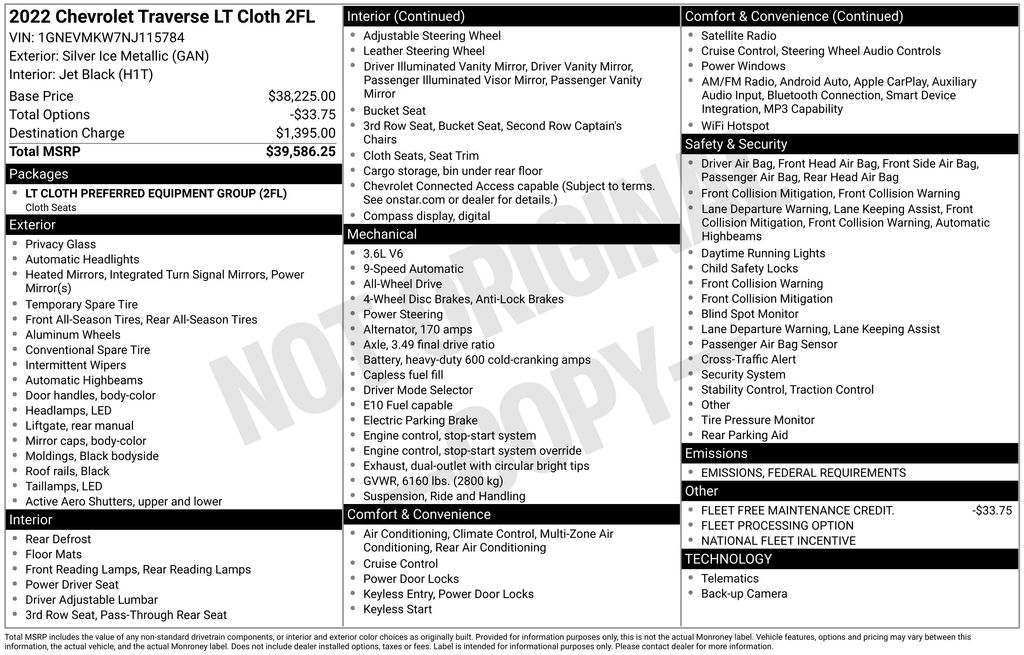 2022 Chevrolet Traverse LT Cloth w/2FL