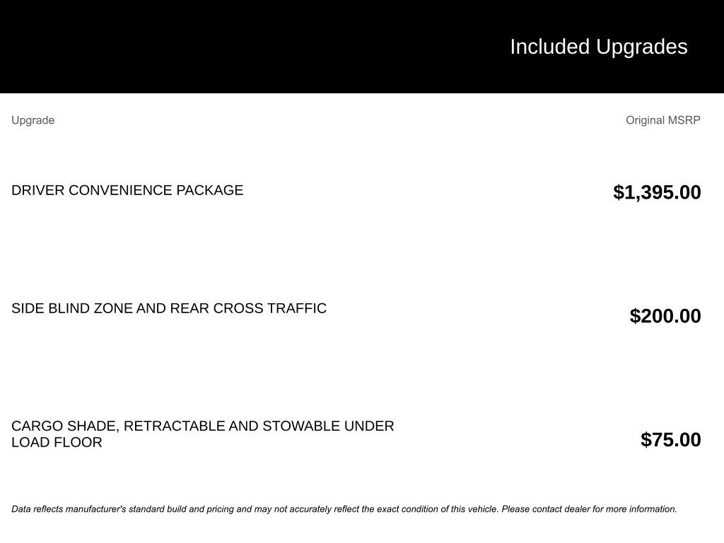 - Interior maximum rear cargo volume: 1,809 L (64 cu.ft.)