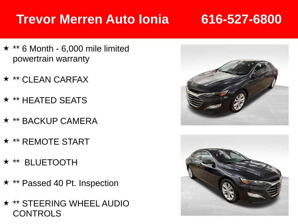 Recent Arrival! ** 6 Month - 6,000 mile limited powertrain warranty, ** CLEAN CARFAX, ** HEATED SEATS, ** BACKUP CAMERA, ** REMOTE START, ** BLUETOOTH, ** Passed 40 Pt. Inspection, ** STEERING WHEEL AUDIO CONTROLS, ** POWER SEAT, ** ALLOY WHEELS, ** MULTI-ZONE CLIMATE CONTROL, ** USB PORT, ** AUX JACK, 17" Aluminum Wheels, 4-Wheel Disc Brakes, 6 Speakers, 6-Speaker Audio System Feature, 6-Way Manual Front Passenger Seat Adjuster, 8-Way Power Driver Seat Adjuster, ABS brakes, Air Conditioning, Alloy wheels, AM/FM radio: SiriusXM, Apple CarPlay/Android Auto, Auto High-beam Headlights, Automatic temperature control, Brake assist, Bumpers: body-color, Compass, Delay-off headlights, Deleted 3 Years of Remote Access, Driver Confidence Package, Driver door bin, Driver vanity mirror, Dual front impact airbags, Dual front side impact airbags, Electronic Stability Control, Emergency communication system: OnStar and Chevrolet connected services capable, Exterior Parking Camera Rear, Four wheel independent suspension, Front anti-roll bar, Front Bucket Seats, Front Center Armrest, Front dual zone A/C, Front License Plate Bracket, Front reading lights, Fully automatic headlights, Heated door mirrors, Heated Driver & Front Passenger Seats, Heated front seats, Illuminated entry, Knee airbag, Lane Change Alert w/Side Blind Zone Alert, Lane Change Alert w/Side Blind Zone Alert (DISC), Low tire pressure warning, Occupant sensing airbag, Outside temperature display, Overhead airbag, Overhead console, Panic alarm, Passenger door bin, Passenger vanity mirror, Power door mirrors, Power Driver Lumbar Control Seat Adjuster, Power driver seat, Power steering, Power windows, Preferred Equipment Group 1LT, Premium audio system: Chevrolet Infotainment 3 Plus, Premium Cloth Seat Trim, Radio data system, Radio: Chevrolet Infotainment 3 System, Rear anti-roll bar, Rear Cross Traffic Alert, Rear Cross Traffic Alert (DISC), Rear Park Assist, Rear reading lights, Rear seat center armrest, Rear side impact airbag, Rear window defroster, Remote keyless entry, Security system, SiriusXM Radio, Speed control, Split folding rear seat, Steering wheel mounted audio controls, Tachometer, Telescoping steering wheel, Tilt steering wheel, Traction control, Trip computer, Variably intermittent wipers, Voltmeter, Wireless Apple CarPlay/Android Auto. Priced below KBB Fair Purchase Price!