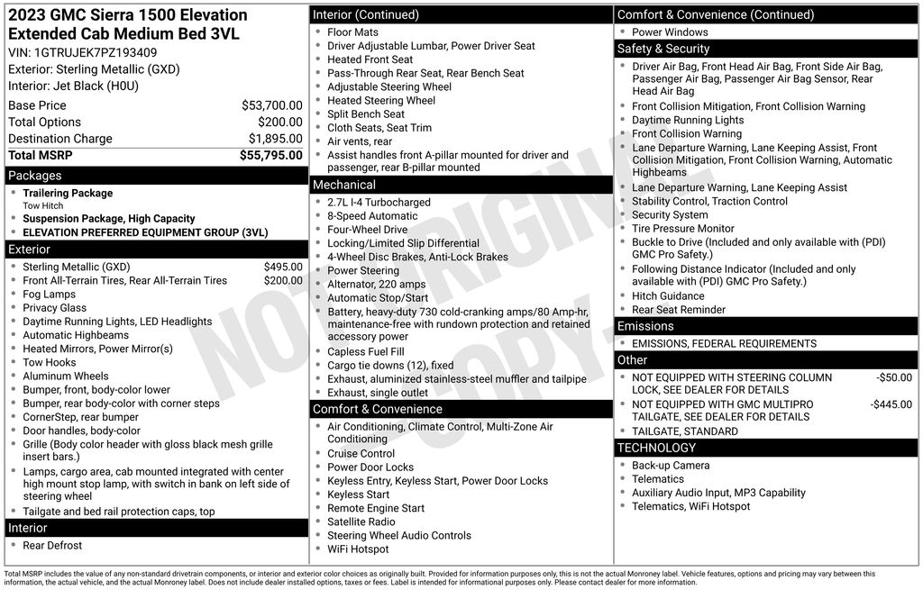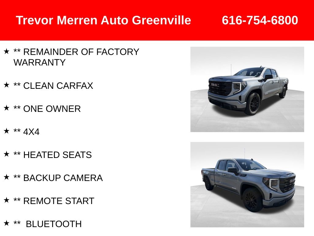 ** REMAINDER OF FACTORY WARRANTY, ** CLEAN CARFAX, ** ONE OWNER, ** 4X4, ** HEATED SEATS, ** BACKUP CAMERA, ** REMOTE START, ** BLUETOOTH, ** Passed 40 Pt. Inspection, ** STEERING WHEEL AUDIO CONTROLS, ** TOW PACKAGE, ** POWER SEAT, ** ALLOY WHEELS, ** MULTI-ZONE CLIMATE CONTROL, ** USB PORT, ** AUX JACK, ** 2 KEYS, ** APPLE CARPLAY/ANDROID AUTO, 120-Volt Bed Mounted Power Outlet, 120-Volt Instrument Panel Power Outlet, 2 Charge/Data USB Ports, 2 Type-C Charge-Only Rear USB Ports, 220 Amp Alternator, Auto-Locking Rear Differential, Body Color Header w/Gloss Black Mesh Grille Bars, Color-Keyed Carpeting Floor Covering, Compass, Deep-Tinted Glass, Electric Rear-Window Defogger, Electrical Steering Column Lock, Front Frame-Mounted Black Recovery Hooks, Front Rubberized-Vinyl Floor Mats, GMC Connected Access Capable, HD Rear Vision Camera, High Capacity Suspension Package, Hitch Guidance, Keyless Open & Start, LED Cargo Area Lighting, Manual Tilt-Wheel & Telescoping Steering Column, OnStar & GMC Connected Services Capable, Power Door Locks, Power Front Windows w/Driver Express Up/Down, Power Front Windows w/Passenger Express Down, Power Rear Windows w/Express Down, Preferred Equipment Group 3VL, Push Button Start, Rear Rubberized-Vinyl Floor Mats, Remote Vehicle Starter System, SiriusXM w/360L, Steering Wheel Audio Controls, Theft Deterrent System (Unauthorized Entry), Trailering Package, Wi-Fi Hotspot Capable, Wireless Phone Projection. Priced below KBB Fair Purchase Price!
