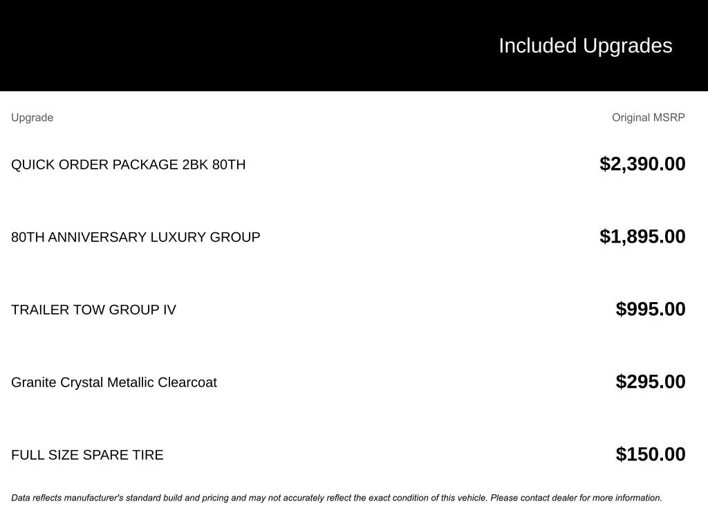Recent Arrival! ** 6 Month - 6,000 mile limited powertrain warranty, ** 4X4, ** MOONROOF, ** HEATED LEATHER, ** HEATED SEATS, ** HEATED STEERING WHEEL, ** HEATED REAR SEATS, ** BACKUP CAMERA, ** REMOTE START, ** BLUETOOTH, ** Passed 40 Pt. Inspection, ** STEERING WHEEL AUDIO CONTROLS, ** TOW PACKAGE, ** POWER SEAT, ** ALLOY WHEELS, ** MULTI-ZONE CLIMATE CONTROL, ** USB PORT, ** 2 KEYS, ** APPLE CARPLAY/ANDROID AUTO, ** BLIND SPOT SENSORS, 1-Year SiriusXM Guardian Trial, 230MM Rear Axle, 3.45 Rear Axle Ratio, 4-Wheel Disc Brakes, 4G LTE Wi-Fi Hot Spot, 506 Watt Amplifier, 6 Speakers, 7 & 4 Pin Wiring Harness, 8.4" Touchscreen Display, 80th Anniversary Luxury Group, ABS brakes, Active Noise Control System, Adaptive Cruise Control w/Stop, Advanced Brake Assist, Air Conditioning, Alloy wheels, AM/FM radio: SiriusXM, Anti-whiplash front head restraints, Apple CarPlay, Apple CarPlay/Android Auto, Audio memory, Auto-dimming door mirrors, Auto-dimming Rear-View mirror, Automatic temperature control, Berber Floor Mats w/80th Anniversary Tag, Black Roof Molding, Body Color Claddings, Body Color Door Handles, Body Color Shark Fin Antenna, Brake assist, Bumpers: body-color, Cargo Compartment Cover, Class IV Receiver Hitch, Compass, Dark Day Light Opening Moldings, Dark Headlamp Bezel Finish, Dark Lens Taillamps, Delay-off headlights, Driver door bin, Driver vanity mirror, Dual front impact airbags, Dual front side impact airbags, Dual-Pane Panoramic Sunroof, Electronic Stability Control, Emergency communication system: SiriusXM Guardian, Four wheel independent suspension, Front Accent/Body Color Fascia, Front anti-roll bar, Front Bucket Seats, Front Center Armrest w/Storage, Front dual zone A/C, Front fog lights, Front License Plate Bracket, Front reading lights, Full Speed FWD Collision Warn Plus, Fully automatic headlights, Garage door transmitter, Google Android Auto, GPS Antenna Input, GPS Navigation, Granite Crystal Exterior Accents, Granite Crystal Exterior Badging, Granite Crystal Exterior Mirror Caps, Granite Crystal/Black Grille, HD Radio, Heated door mirrors, Heated front seats, Heated Second Row Seats, Heated steering wheel, Heavy-Duty Engine Cooling, Illuminated entry, Integrated Voice Command w/Bluetooth, Jeep 80th Anniversary Badges, Jeep 80th Anniversary Edition, Knee airbag, Lane Departure Warning Plus, Leather Shift Knob, Leather Trimmed Bucket Seats, Leather Trimmed Bucket Seats (JY), Low tire pressure warning, LT. Tungsten Interior Accent Stitching, Memory seat, Navigation System, Normal Duty Suspension, Occupant sensing airbag, Outside temperature display, Overhead airbag, Overhead console, Panic alarm, Parallel & Perp Park Assist w/Stop, ParkView Rear Back-Up Camera, Passenger door bin, Passenger vanity mirror, Piano Black/Anod. Gunmetal Interior Accents, Power door mirrors, Power driver seat, Power Liftgate, Power moonroof, Power passenger seat, Power steering, Power Tilt/Telescope Steering Column, Power windows, Premium Alpine Speaker System, Quick Order Package 2BK 80th, Radio data system, Radio: Uconnect 4C Nav w/8.4" Display, Rain Sensitive Windshield Wipers, Rear Accent/Body Color Fascia, Rear anti-roll bar, Rear Load Leveling Suspension, Rear reading lights, Rear seat center armrest, Rear window defroster, Rear window wiper, Remote keyless entry, Roof rack: rails only, Security system, SiriusXM Satellite Radio, SiriusXM Traffic Plus, SiriusXM Travel Link, Speed control, Speed-sensing steering, Speed-Sensitive Wipers, Split folding rear seat, Spoiler, Steering wheel mounted audio controls, Tachometer, Telescoping steering wheel, Tilt steering wheel, Traction control, Trailer Tow Group IV, Trip computer, Turn signal indicator mirrors, Variably intermittent wipers, Ventilated Front Seats, Voltmeter, Wheels: 20" x 8.0" Granite Crystal Aluminum.